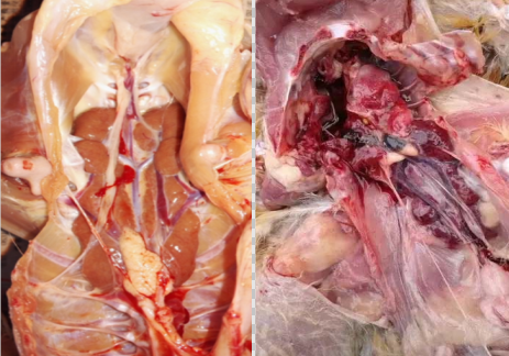 观察鸡群状况,根据发病日龄、临床症状、流行病学和死亡规律;解剖察看病理变化,若有上述特征性病变则可初步诊断;进一步诊断还需要采集病料(主要肝、肾、肺脏等病变组织),实验室做核酸检测。